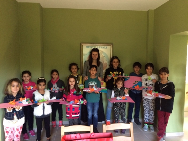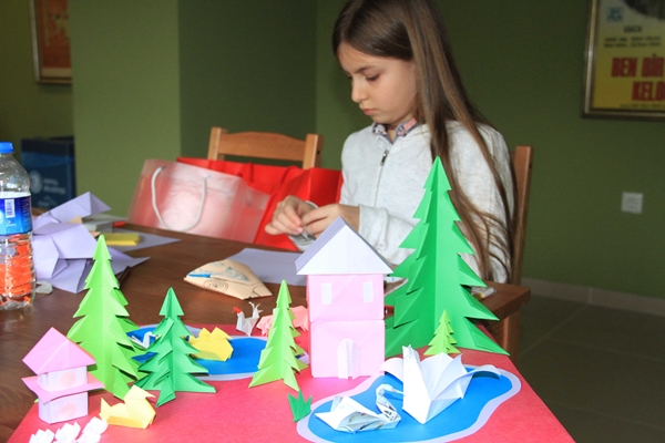 Origami atölyesinde ise çocuklar, çeşitli renklerden oluşan fon kartonlardan masal kahramanlarının origamisini yaptı. Atölye çalışmalarının bitiminde çocuklar, Masal Müzesi“ni gezerek sevdikleri masal kahramanlarının heykelleriyle fotoğraf çektirdi.