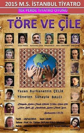 “Engel Sizsiniz, Farkında mısınız?” sloganıyla gerçekleştirilecek ve kendisi de MS hastası olan Burhanettin Çelik tarafından yazılan ve Süheyla Balcı tarafından yönetilen "Töre ve Çile" adlı oyun, 20 Aralık Pazar günü, saat 13.00“da Maltepelilerle buluşacak.