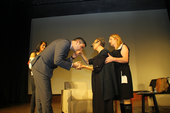 2 saat süren oyundan sonra tiyatro sanatçısı Süreyya Küçük“e Kartal Belediyesi Başkan Yardımcısı Gökhan Yüksel çiçek takdim etti.