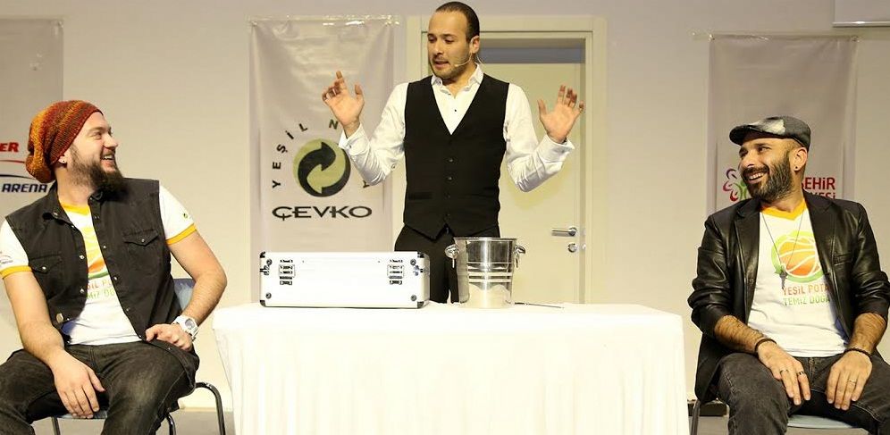 Ataşehir“de en çok geri dönüşümlü atık toplayan ilk 3 okulun öğrencileri ve misafir öğrenciler için Ataşehir Belediyesi Cemal Süreyya Etkinlik Salonu“nda saat 14.00“de başlayan İrem ve köpeği Cash ile İllüzyonist Volkan Tunç“un gösterilerinden sonra, öğrenciler Fenerbahçe-Royal Halı Gaziantep maçını Ülker Sports Arena“da hep birlikte izlediler.
